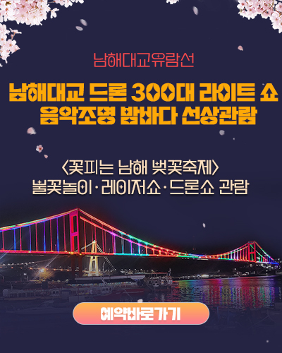 남해안 한려수도의 아름다운 자연경관을 볼 수 있는 남해대교 대도상륙관광 (2시간 코스)